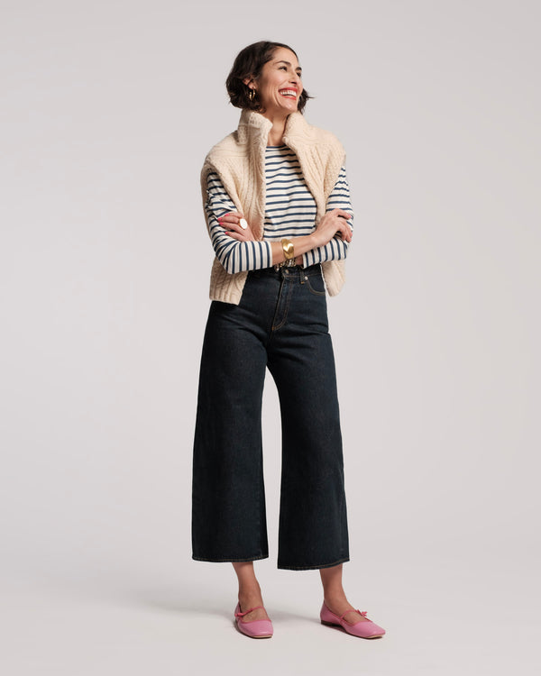 Denim with dimension. Judy is a classic wide-leg, high waisted jean with visible seam details, crafted in high-quality selvedge denim for durable yet comfortable wear. Lengthening the legs and accentuating the waistline, this versatile shape adds volume to casual and dressy wear alike.