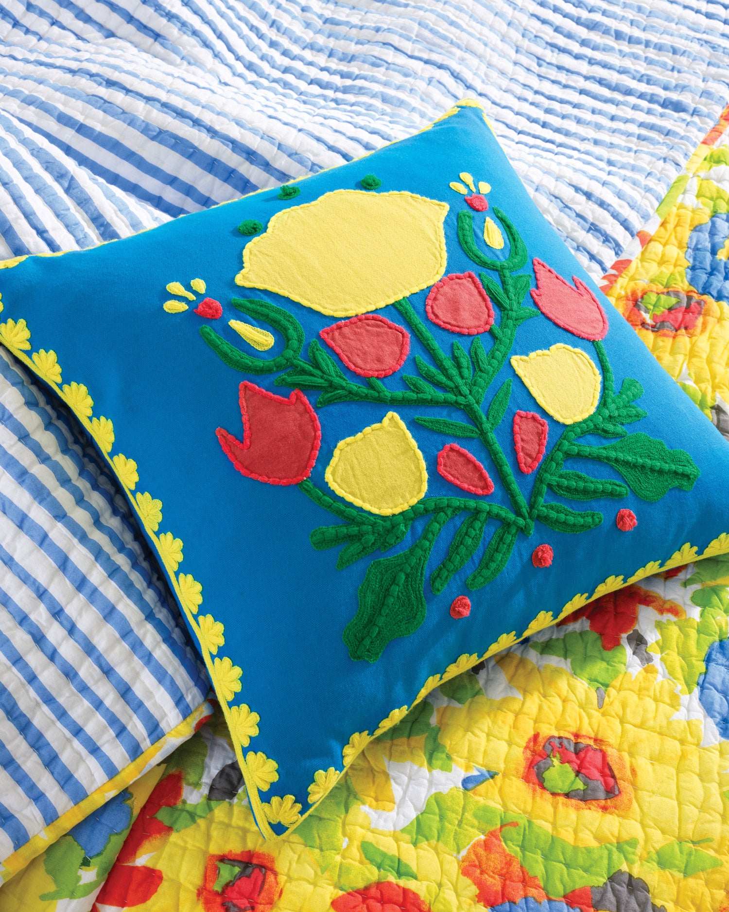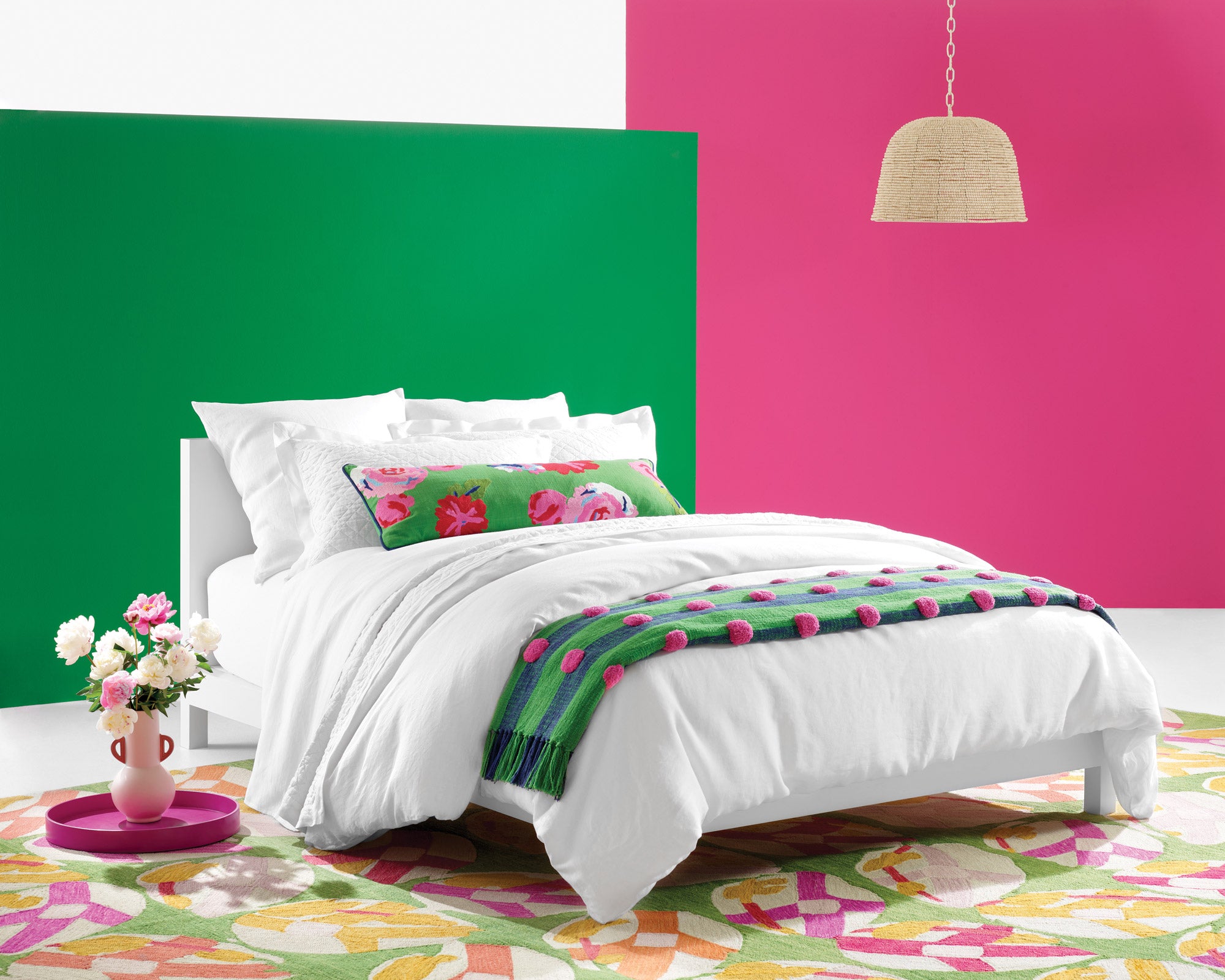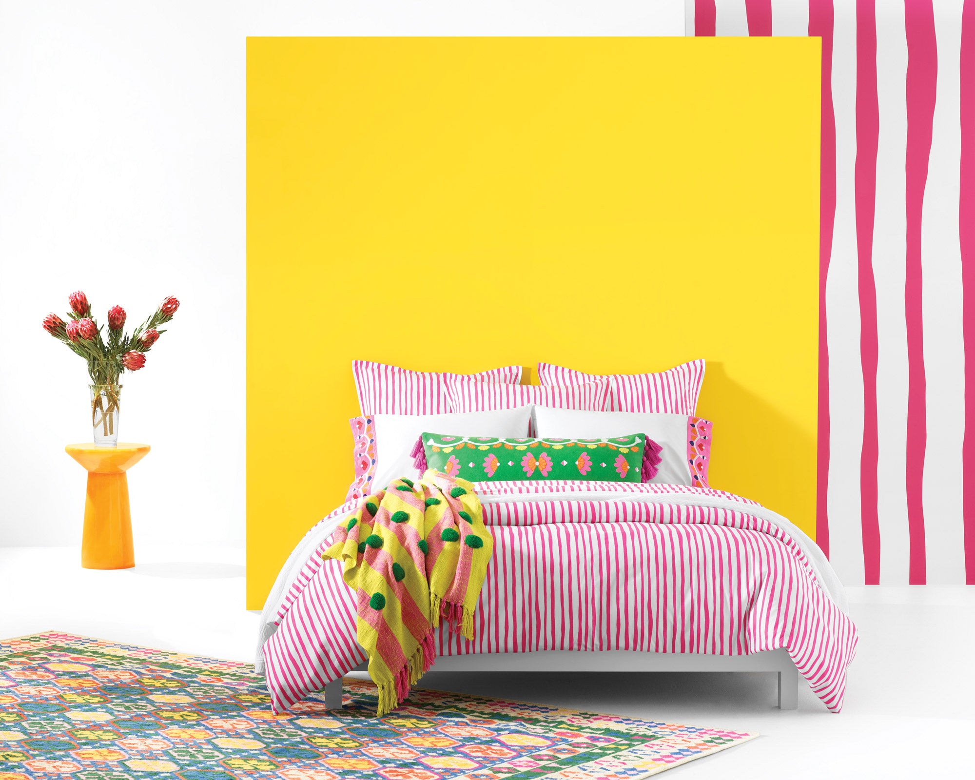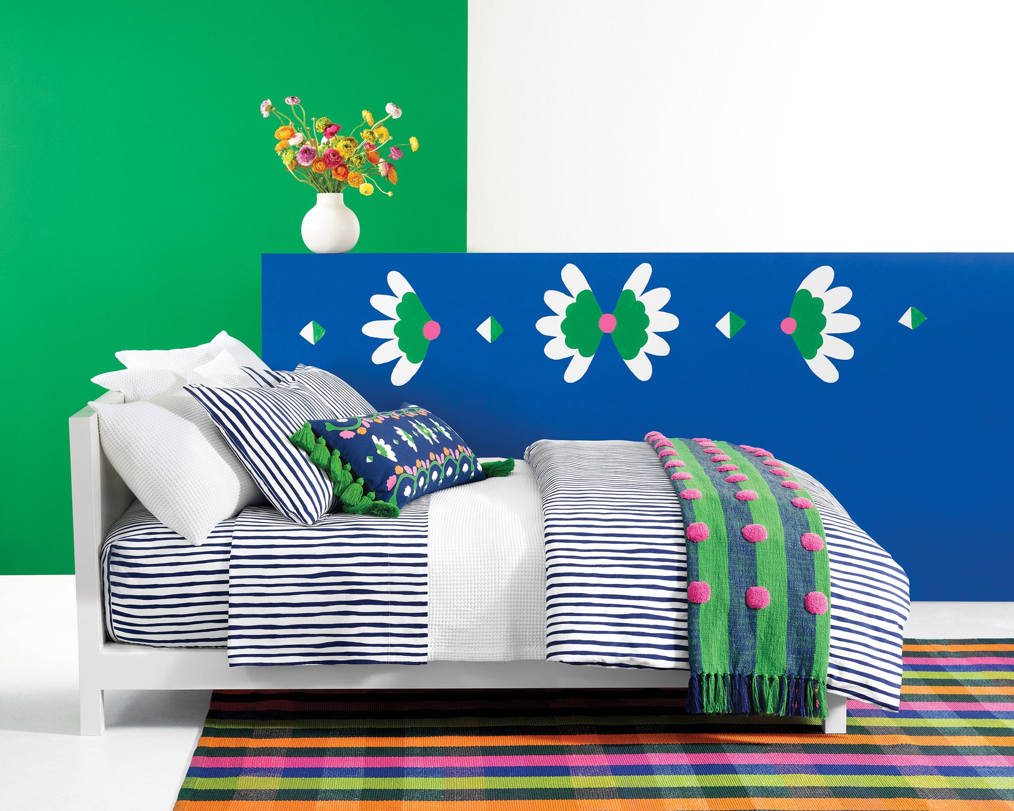 We’ve taken a rainbow-hued assortment of whimsical patterns and splashed them across a selection of bedding, pillows, and throws—all with our signature attention to detail, of course. Here’s to a bold, bright, and fashionable summer!