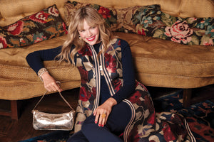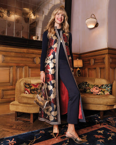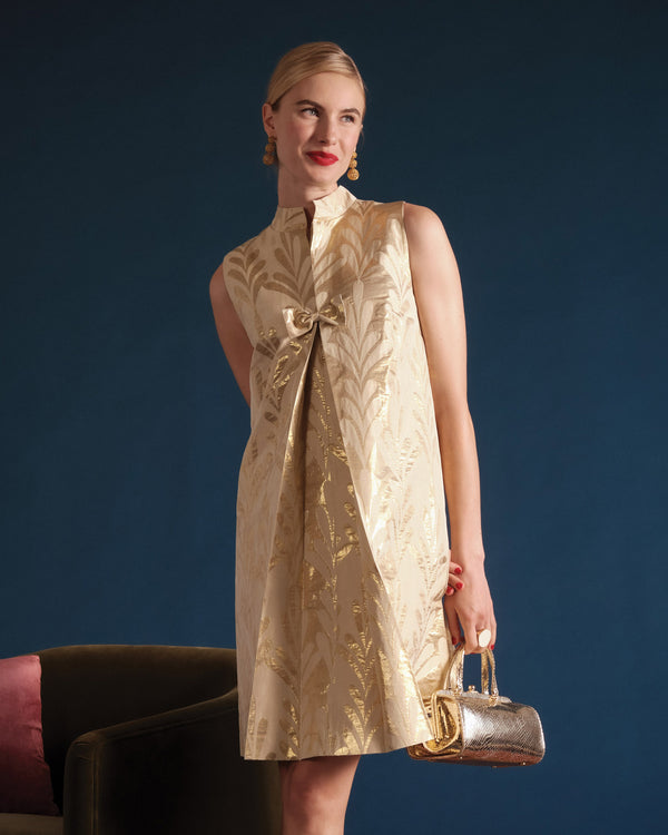 Our Floating Floral collection is ready for the holiday season in a party-perfect metallic jacquard.