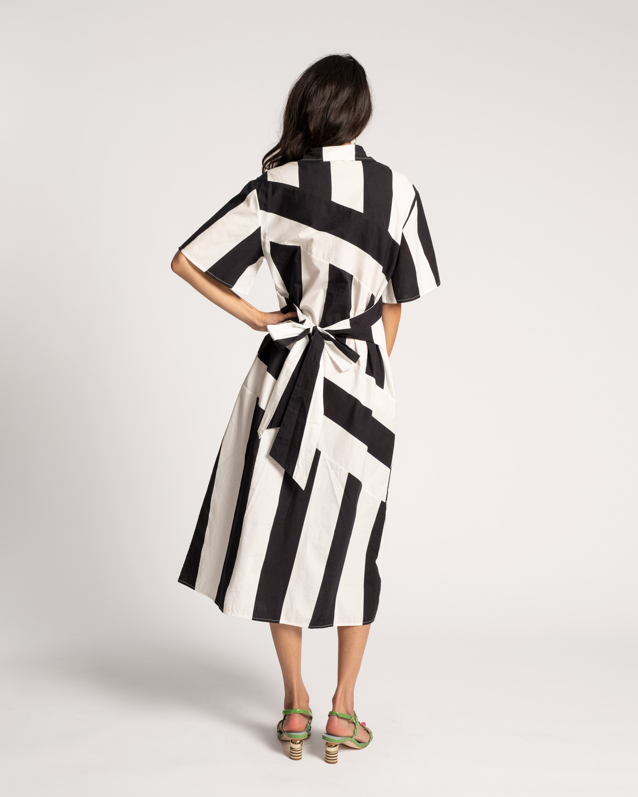 Tailor-made. Amanda is a timeless women's shirt dress design with a twist – uniquely shaped with wide short sleeves, a fitted waist and flared bottom skirt. Detailed with front-buttons and bold print patterns, this midi dress is perfect for styling clean-cut, warm weather looks.