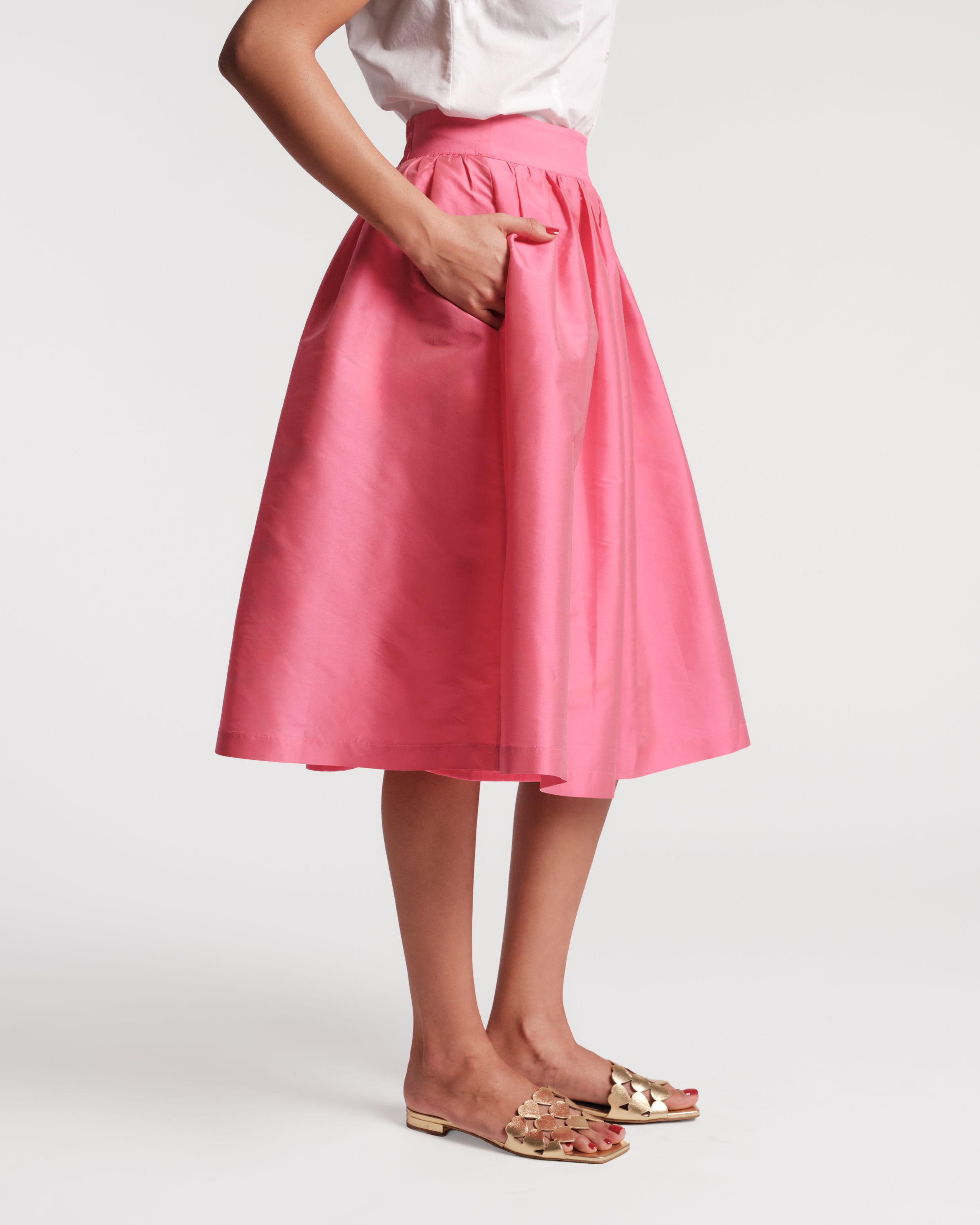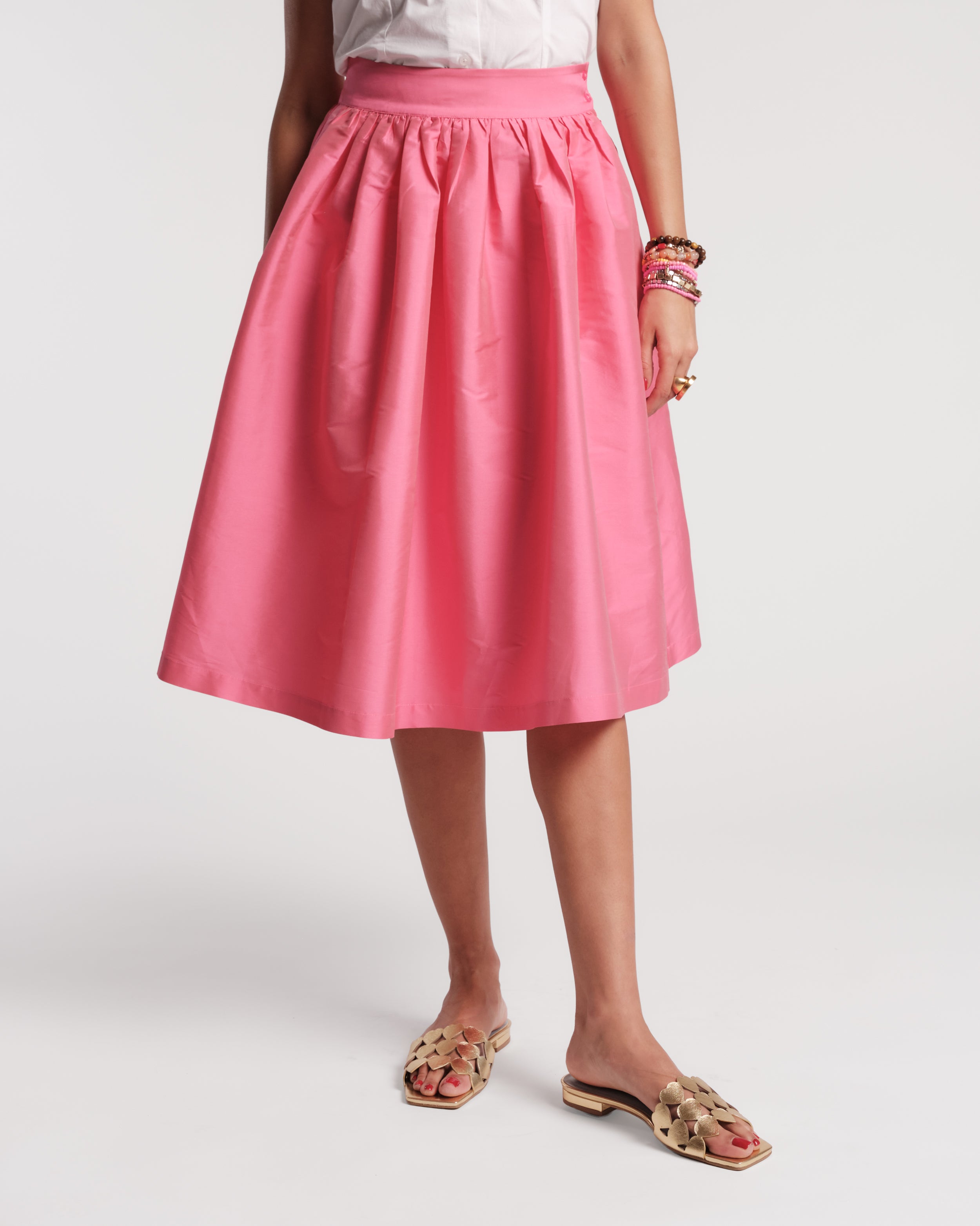 The Barbara Gathered Midi features a waistband with a cinched backing and hits just over the knee, making it endlessly flattering and a perfect pairing with a white button-down or your favorite sweater.