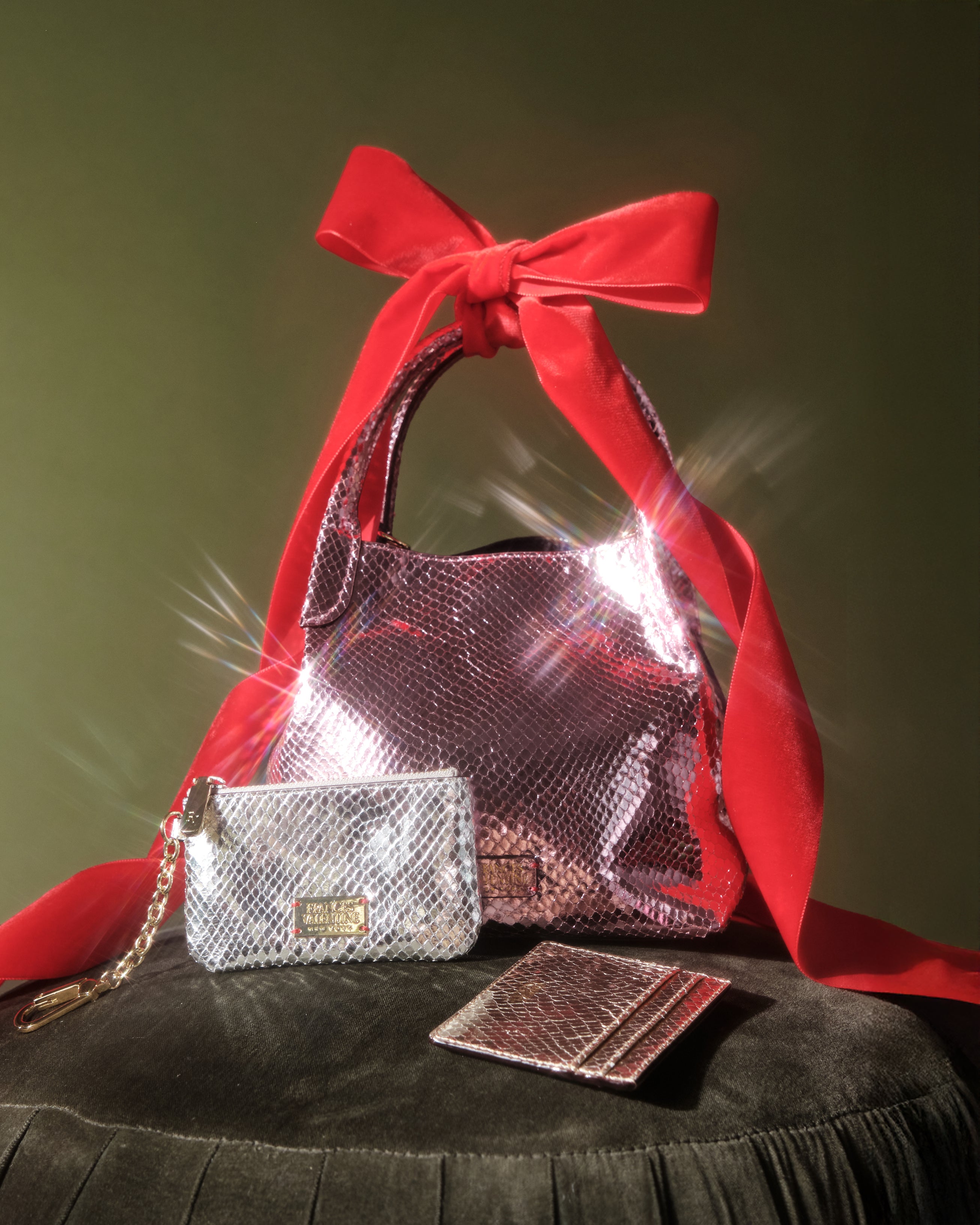 Say hello to your favorite accessory: the Bitsy Key Pouch. Made from stylish metallic snakeskin, this compact marvel features a secure zip closure and a handy key chain attachment. Perfect for keeping your essentials close while adding a dash of flair to your day.