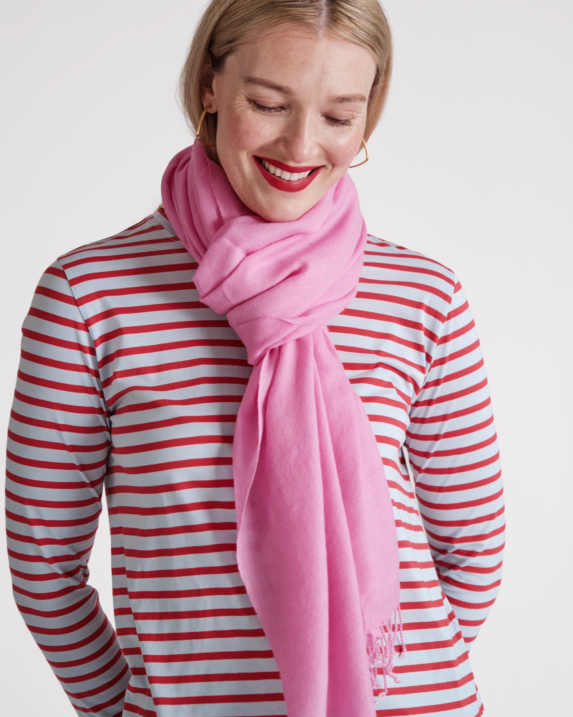 Wrap yourself in effortless luxury. Soft cashmere and silk blend into a light, drapable scarf finished with delicate fringe.