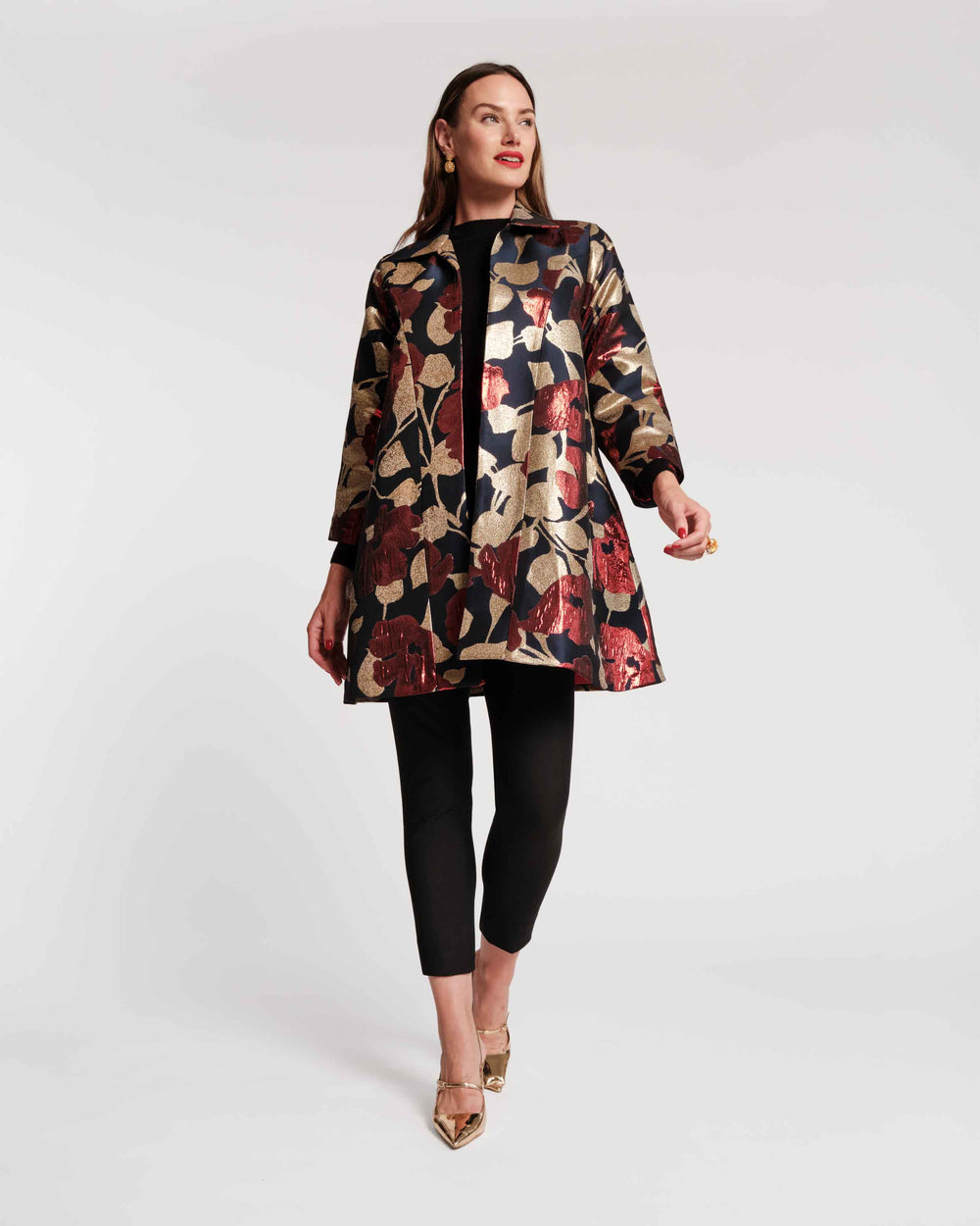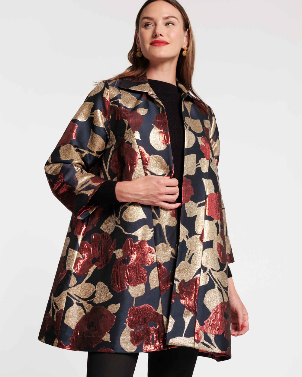 You can always rely on the Cornelia Swing Jacket to stand out in a crowd. The Floating Floral Jacquard print gives this iconic silhouette event-ready appeal. For a classic, sophisticated look reminiscent of Grace Kelly, accessorize with your finest leather gloves and a stylish winter hat, et voilà! An evening look for the books.