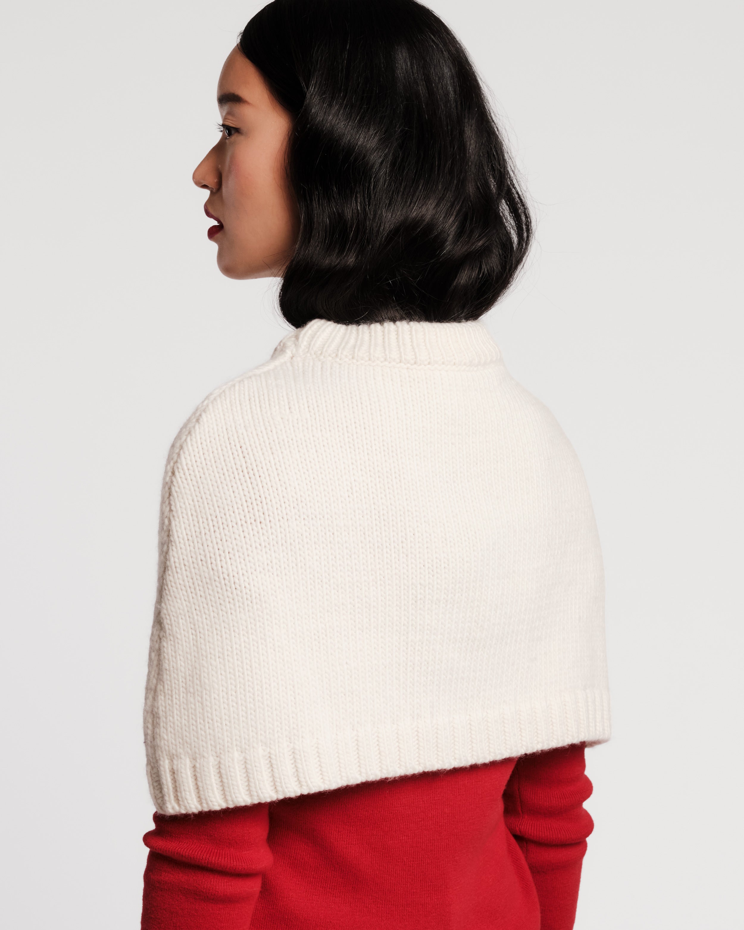 A playful layer with a polished finish. This wool-blend shrug is hand-embroidered with bold floral motifs, adding warmth and whimsy to any winter look. Designed to sit effortlessly over tops or dresses, it brings a touch of texture and color contrast to your cold-weather staples.