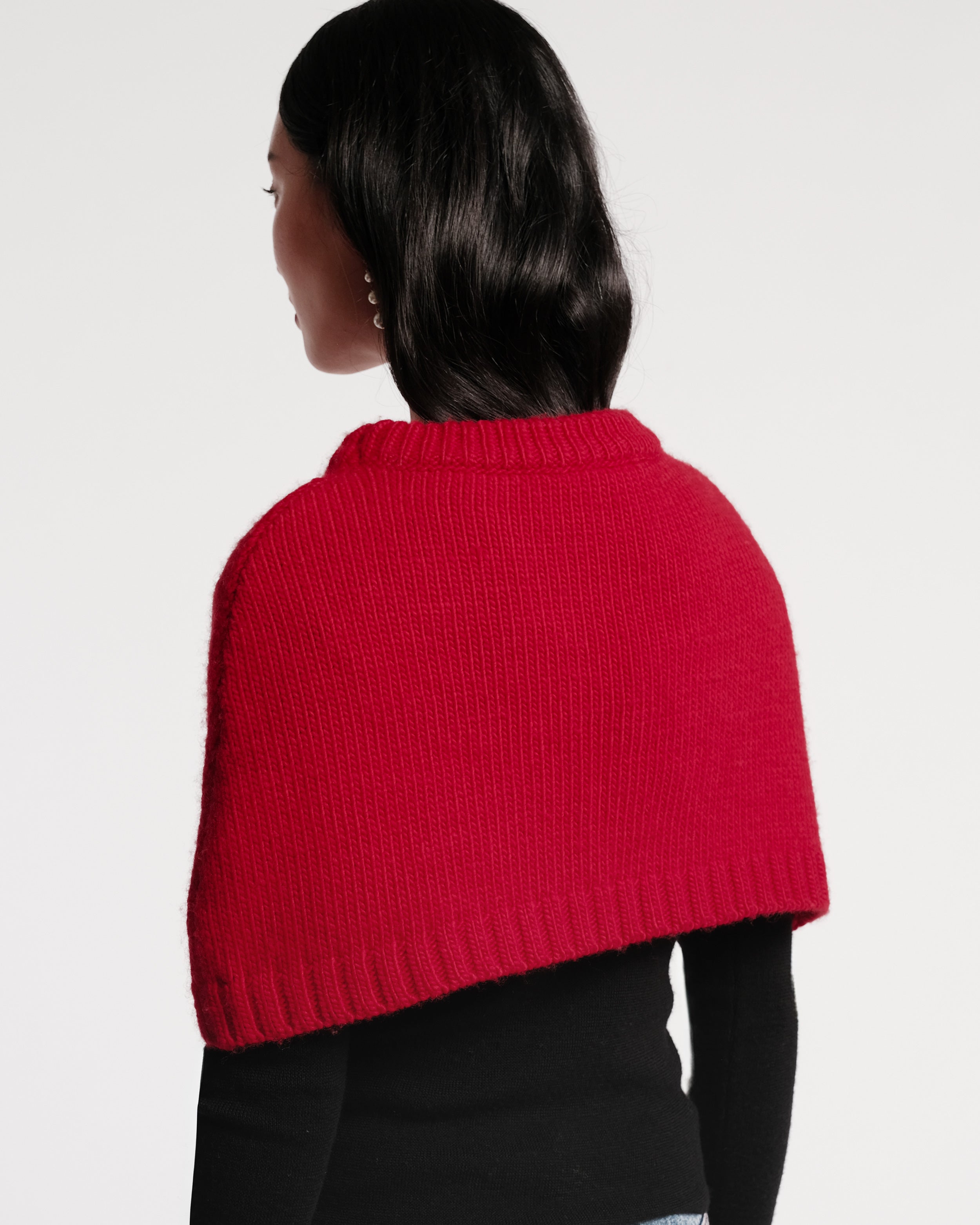 A playful layer with a polished finish. This wool-blend shrug is hand-embroidered with bold floral motifs, adding warmth and whimsy to any winter look. Designed to sit effortlessly over tops or dresses, it brings a touch of texture and color contrast to your cold-weather staples.