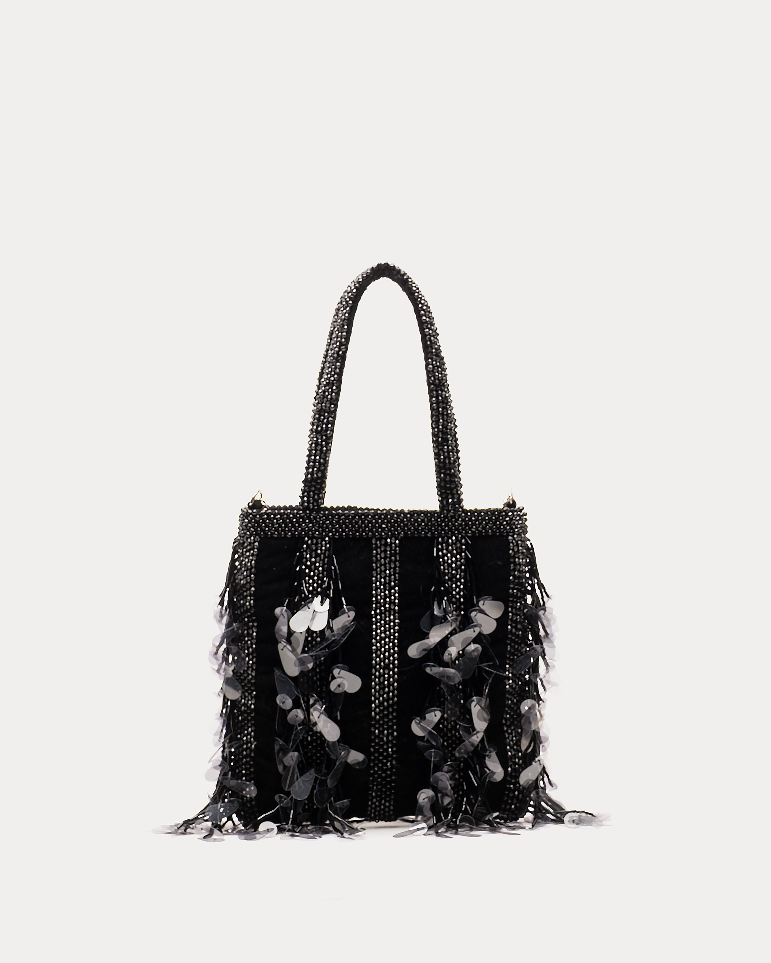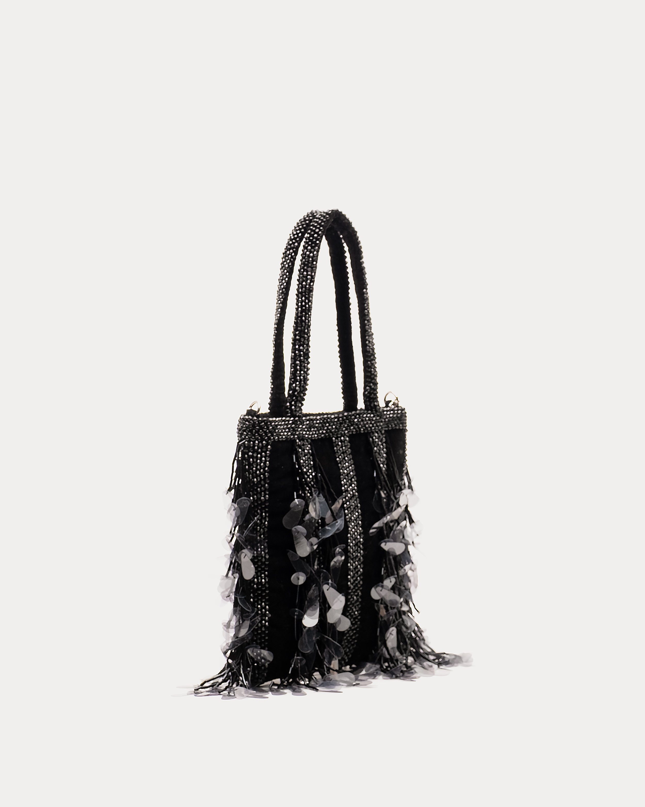 The Gatsby Mini Tote is unequivocally the statement bag of the season. Experience timeless elegance with this old Hollywood-inspired handbag, a stunning portrayal of luxury. With its striking embellishments, this glamorous accessory will add a touch of shine to any occasion.