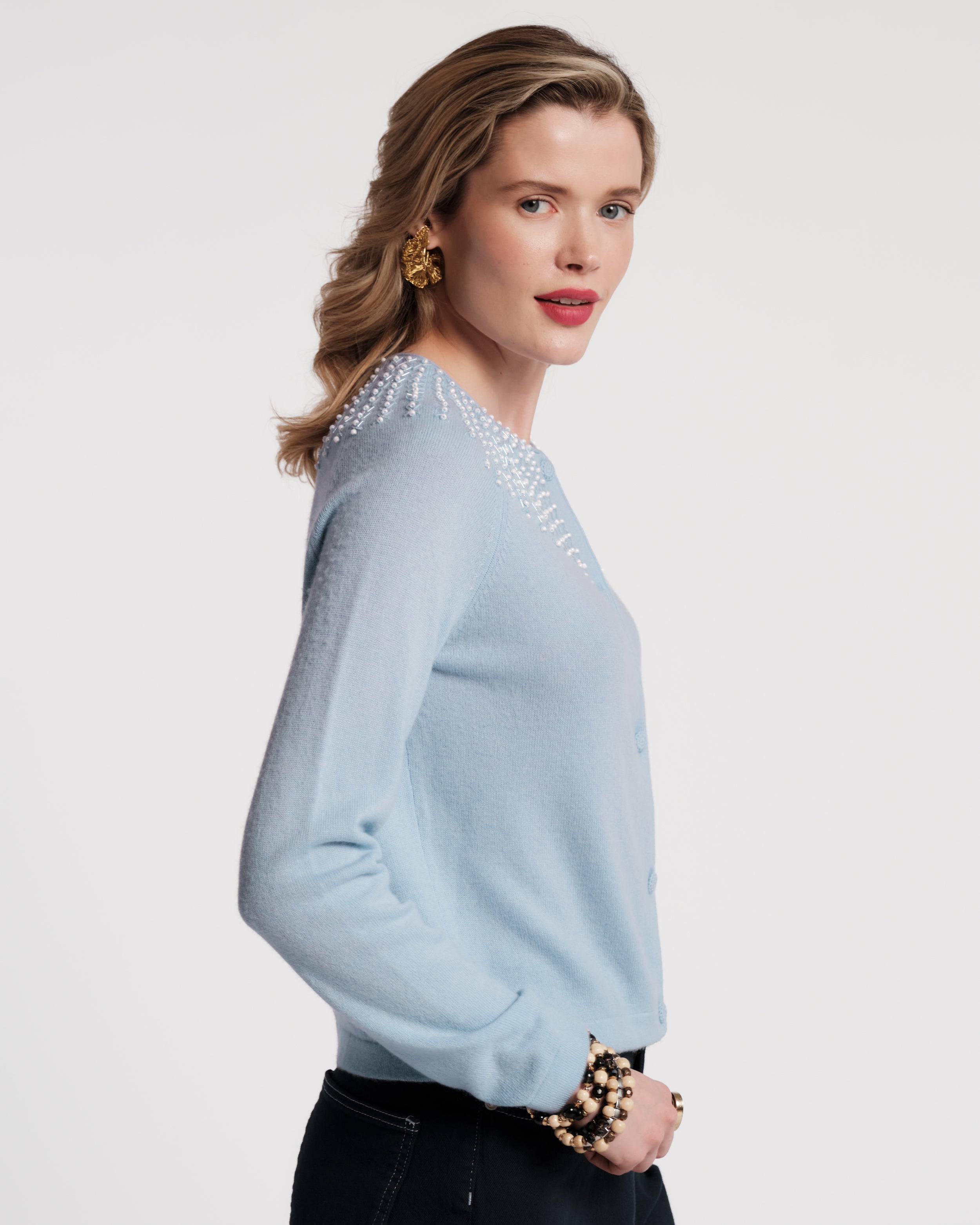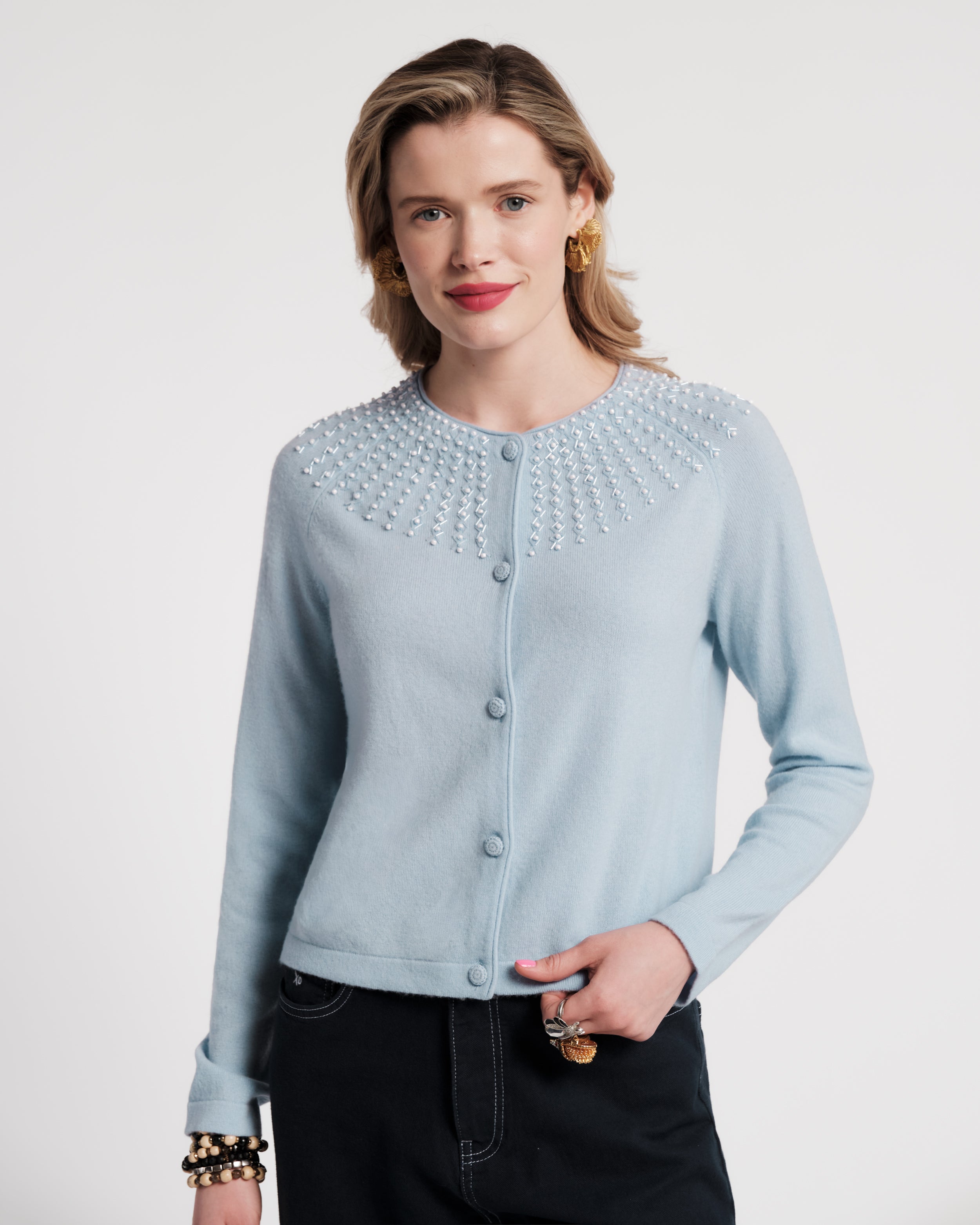Inspired by Ruth Bader Ginsburg’s iconic lace collars, this statement sweater features an embroidered pearl-decorated neckline as a nod to history. Fitted similarly to our Darling Cardigan, the RBG Cardigan is a polished, versatile piece perfect for spring styling.