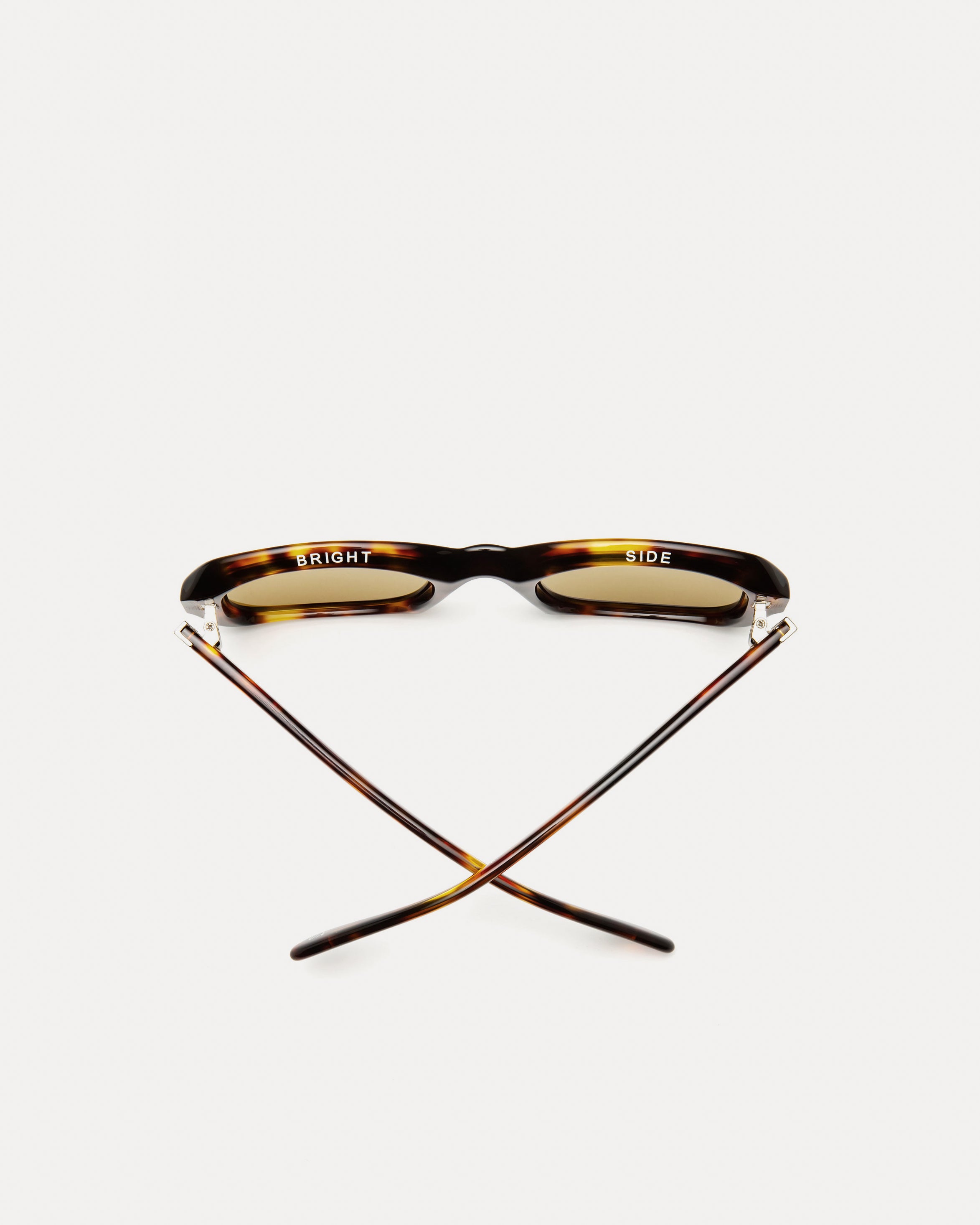 The Shelby Sunglasses are a square, slightly oversized silhouette with vintage ’70s flair, designed in polished terrapin.