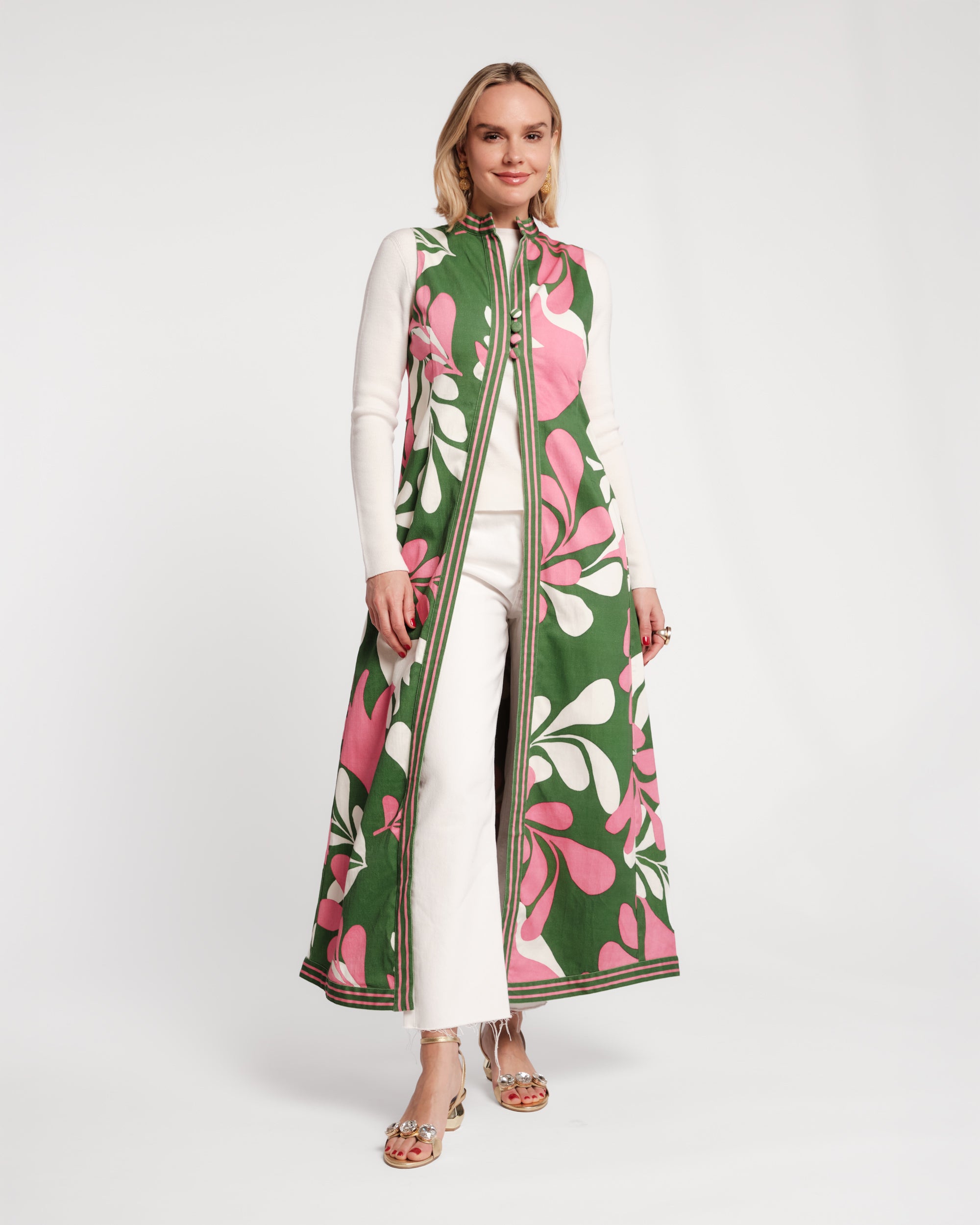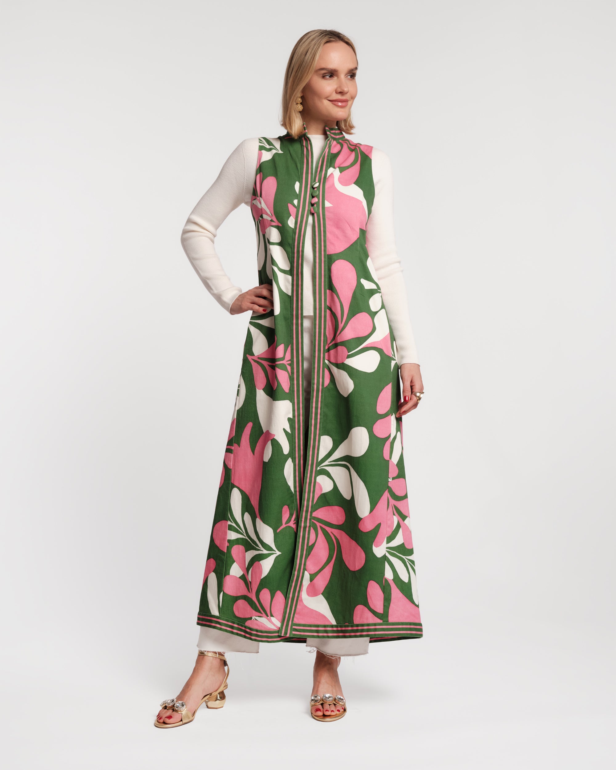 The Susie Jacket returns in a swirling '70s-inspired floral print. Its vintage-inspired silhouette makes it just the thing to throw over sun-kissed shoulders when the sun dips low. Dress it up for al fresco and layer it over white denim for a dash the full look.
