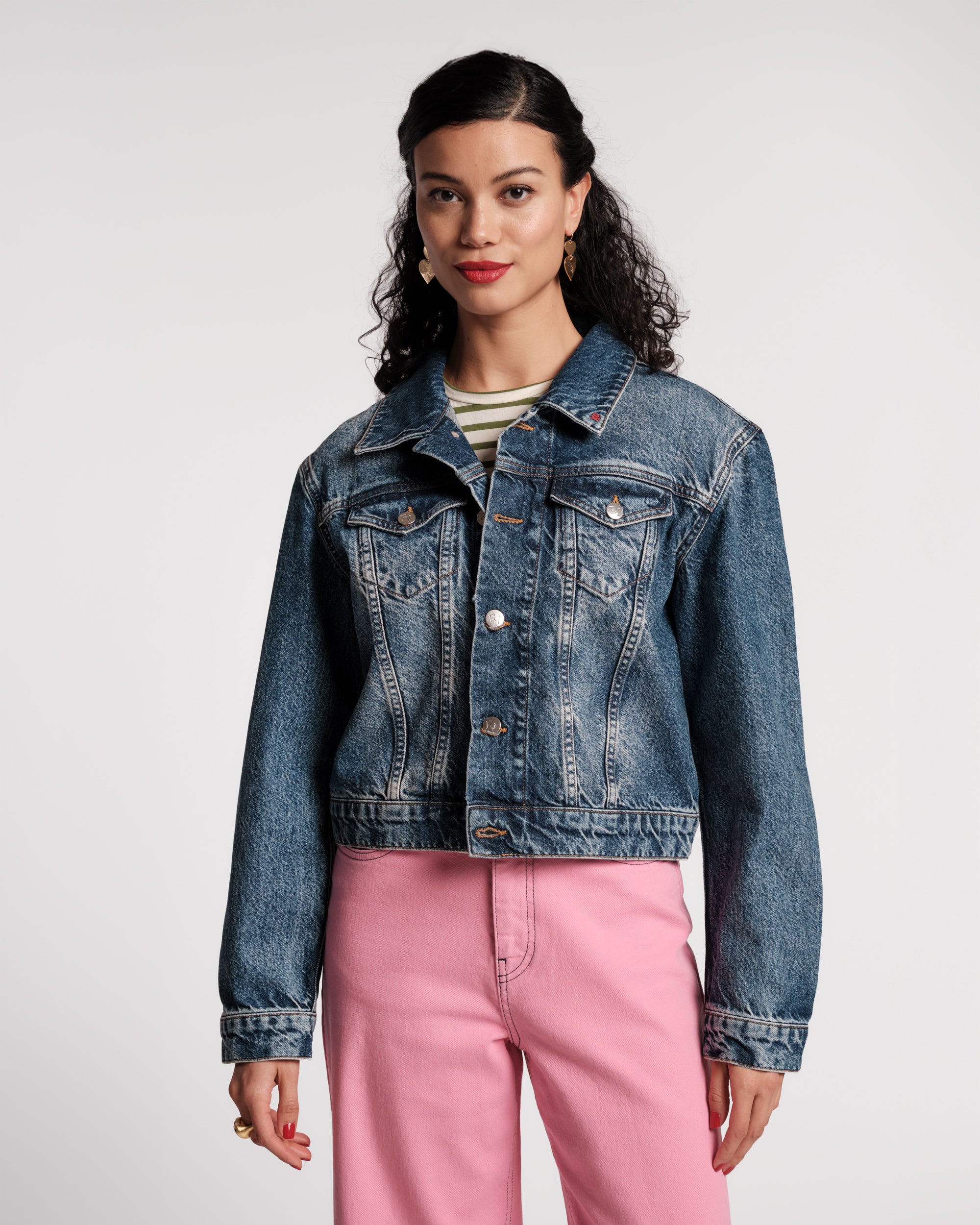Our take on the classic denim jacket, with just enough nostalgia to keep it interesting. The fit is relaxed and slightly cropped, purposefully cut to hit right at the waistband of our new Andy Jean or paired effortlessly with your favorite dress. Washed to a sun-faded blue that looks like you've had it forever.