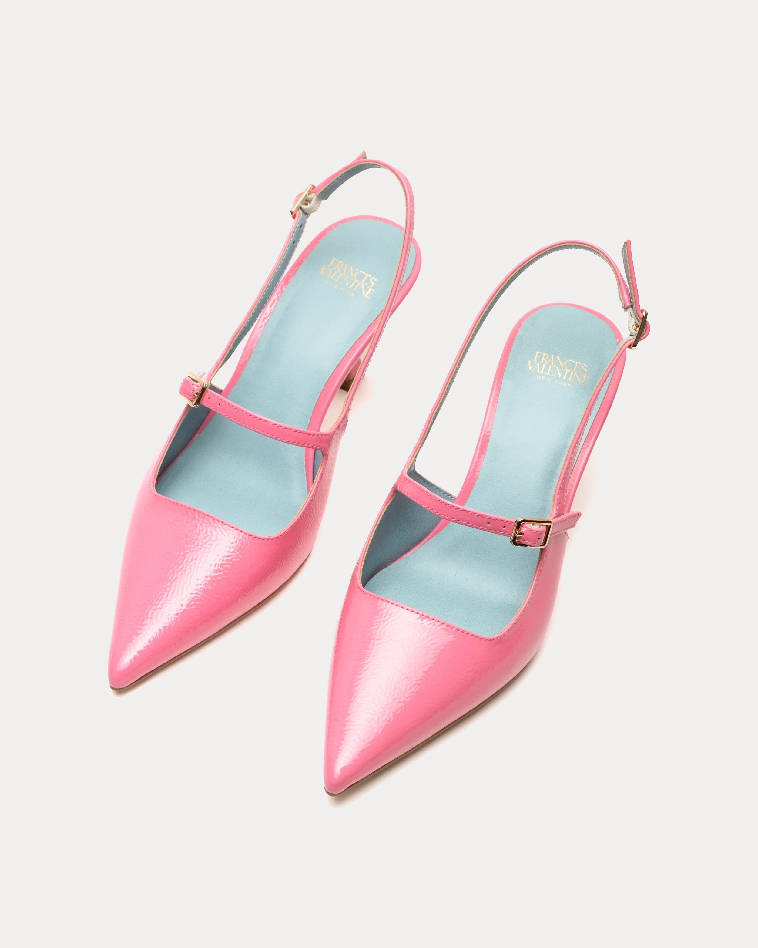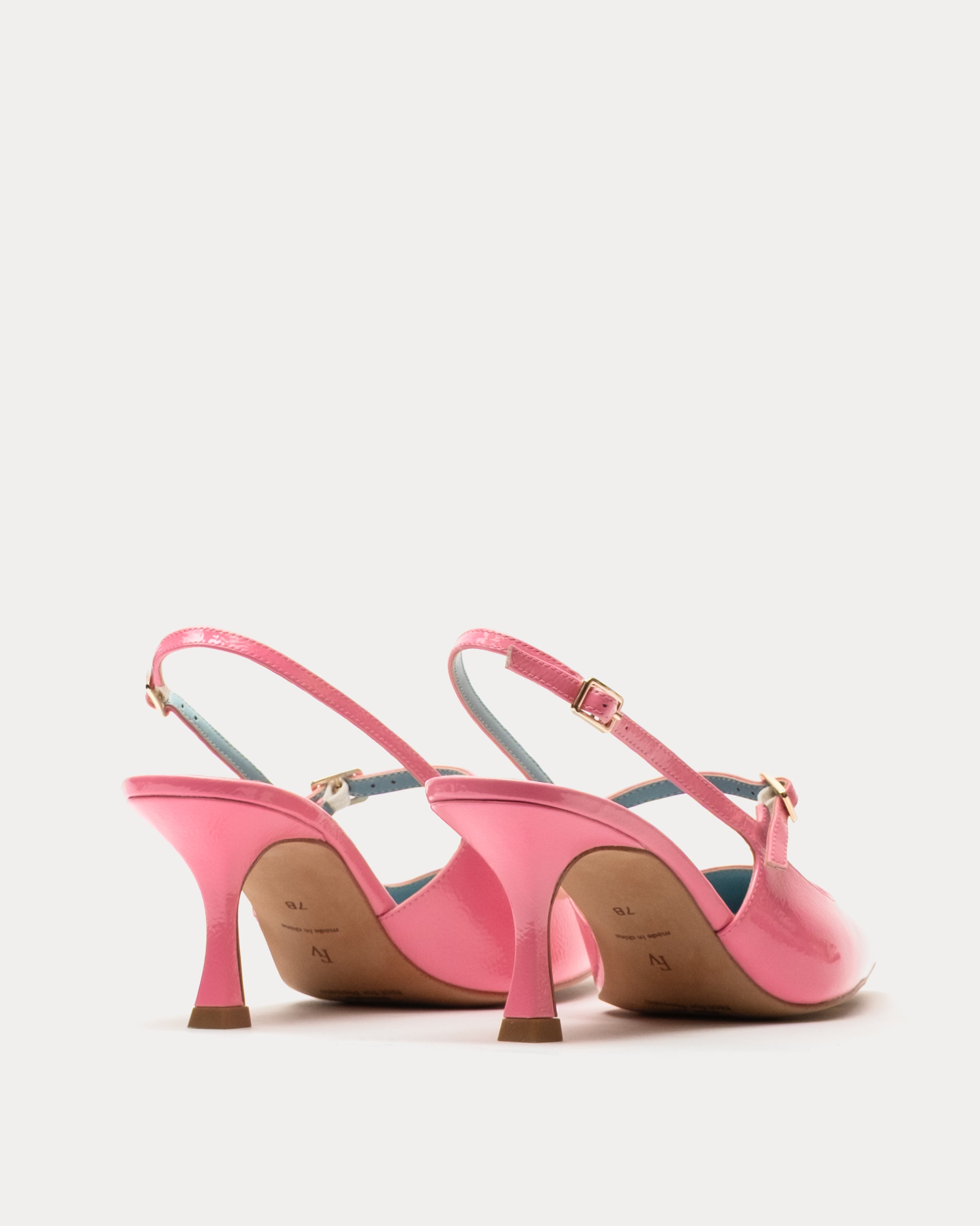 The Vivi Slingback is a modern classic with just the right edge. Inspired by our best-selling Vivian pump, this new silhouette is equal parts refined and unexpected. A Mary Jane-style strat crosses the arch with an elegat buckle, while the slingback and tapered heel add quiet polish. Whether you're heading uptown or just around the corner, the Vivi is built for busy days and dressed-up nights.